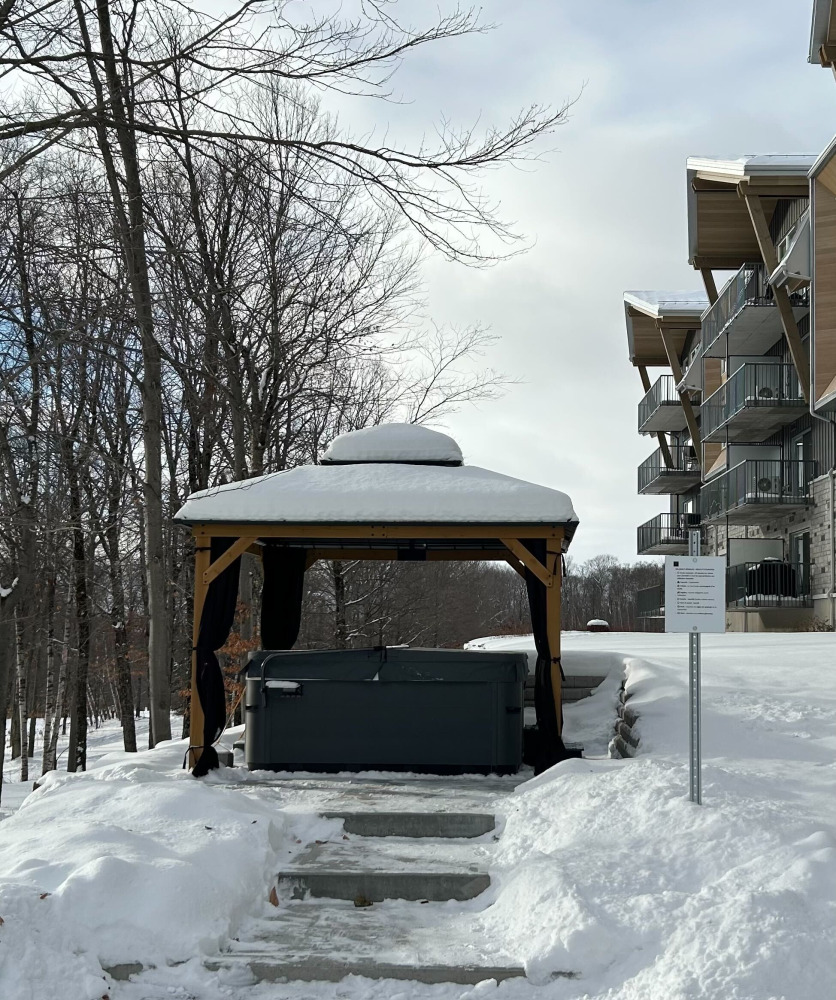 Spa privé extérieur neuf avec accès à un spa directement à l'immeuble en sortant du garage tous-terrains. Vous aurez accès à une piscine intérieure à seulement 2 minutes, incluant 4 laissez-passer gratuits pour le complexe externe .Balcon privé avec BBQ et foyer 4 saisons, offrant une vue spectaculaire sur la montagne et le golf, parfait pour un apéro au coucher du soleil. Salle de séchage privée et sécuritaire pour chaque occupant : chauffée avec support à bottes et skis + drain intégré : fini les équipements humides ! Salle de jeux pour tous dans le club-house de l’immeuble, pour des moments de convivialité et de détente.