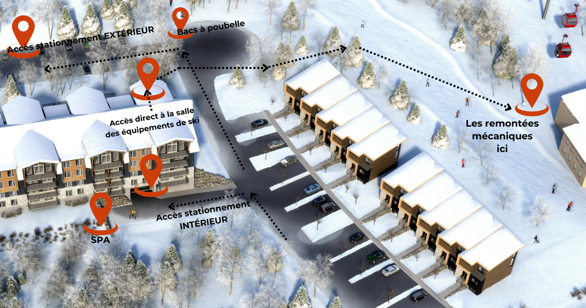 Spa privé extérieur neuf avec accès à un spa directement à l'immeuble en sortant du garage tous-terrains. Vous aurez accès à une piscine intérieure à seulement 2 minutes, incluant 4 laissez-passer gratuits pour le complexe externe .Balcon privé avec BBQ et foyer 4 saisons, offrant une vue spectaculaire sur la montagne et le golf, parfait pour un apéro au coucher du soleil. Salle de séchage privée et sécuritaire pour chaque occupant : chauffée avec support à bottes et skis + drain intégré : fini les équipements humides ! Salle de jeux pour tous dans le club-house de l’immeuble, pour des moments de convivialité et de détente.